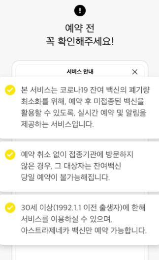 잔여백신을 모든 사람들이 예약가능한것은 아닙니다. 일단 아스트라제네카를 접종하는것이기 때문에 30세 미만은 잔여백신 예약이 불가능합니다. 반대로 30세 이상의 사람들은 예약이 가능한데요. 그중에 이미 코로나 백신을 사전예약하신분들도 당일 예약은 불가능하시다고 보면 됩니다.