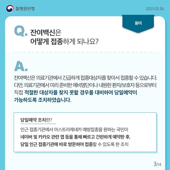 이 때문에 어제 이미 수많은 직장인과 젊은층이 잔여백신 예약에 몰렸다고 합니다. 어차피 맞아야될거 빨리빨리 맞는게 좋겠죠? 가능하신분들은 잔여백신을 통해서라도 빨리 접종하셔서 이 답답함으로부터 벗어나시기 바랍니다.