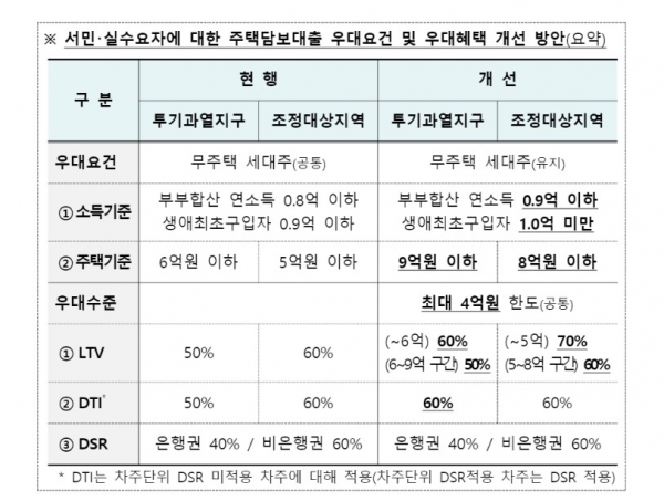 이제 정책이 주택담보대출 규제가 바뀌면 4억원까지 대출을 받을 수 있습니다. 그러나 투기지역 등에서 실거래가 9억원, 조정대상지역에서 8억원이 넘는 집을 살 때는 이런 주택담보대출 우대가 적용되지 않습니다.