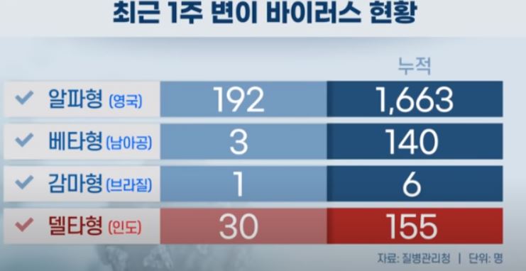 여기서 인도발 코로나 변이 바이러스를 왜 델타 변이라고 부르는지 궁금해하실 수도 있는데요. 델타 변이는 네번째 변이 바이러스입니다. 그러니까 처음 나타난 코로나 변이 바이러스는 알파 변이라고 불리고요. 알파 변이, 베타 변이, 감마 변이 그리고 네번째로 델타 변이라는 이름이 붙여진거죠. 참고로 알파 변이인 첫번째 코로나 변종 바이러스는 영국에서, 베타 변이는 남아공에서, 감마 변이는 브라질, 델타 변이는 인도에서 나타났습니다.