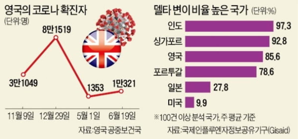 인도 인구가 무려 15억명인데요. 여기서 변이 바이러스가 나왔으니 정말 만만치 않은 변이 바이러스겠죠. 이렇게 탄생한 델타 변이 바이러스가 주변국인 네팔뿐만 아니라 영국까지 상륙하더니 이제 전세계적으로 퍼져나가기 시작한것입니다.
