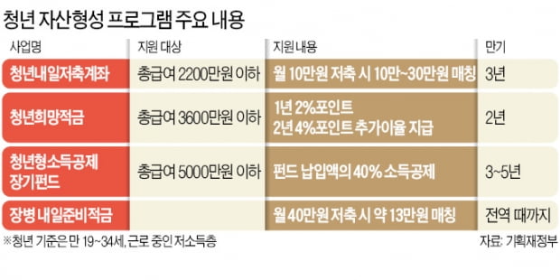 청년정책으로 청년층의 자산 형성을 돕기 위해 소득기간별로 세 종류의 금융상품을 출시하겠다고 발표했는데요.