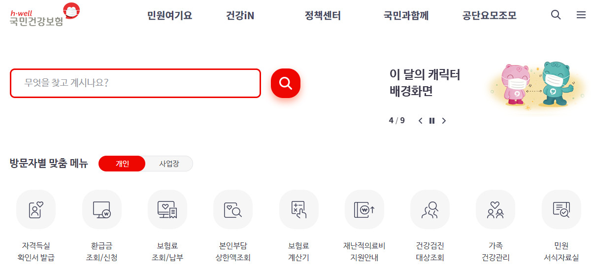 본인 건강보험료 공식 홈페이지