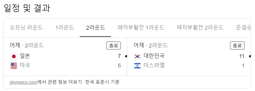 B조는 미국, 대한민국, 이스라엘 순으로 1-3위가 결정되었습니다.