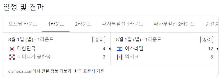 8월 3일(화) 19:00 : 패자부활전 1라운드 (이스라엘 : 도미니카 공화국)