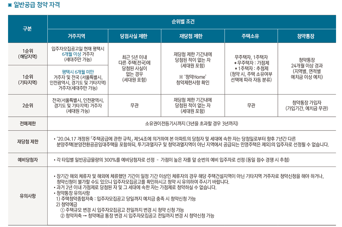 일반공급 1순위 자격조건