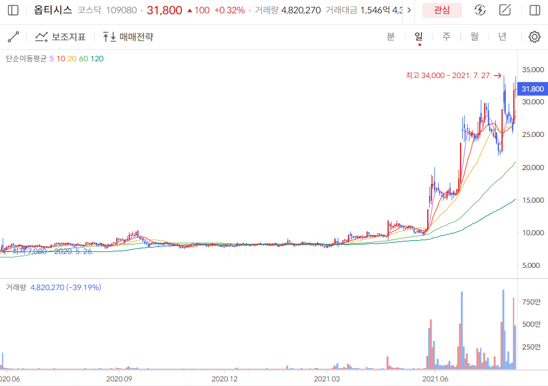 >옵티시스 실시간 차트 확인하기<