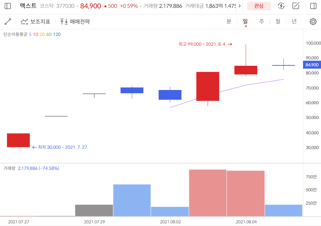 >맥스트 실시간 차트 확인하기<