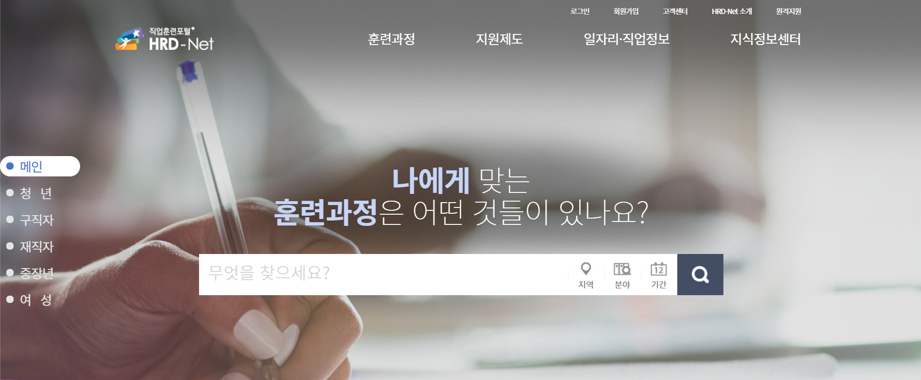 제일 대표적인 곳이 HRD-Net입니다. 이곳에서는 수많은 국비지원 교육과정이 등록되어 있습니다.