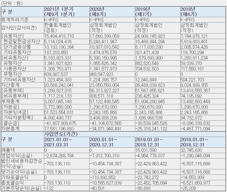 바이젠셀 요약재무제표