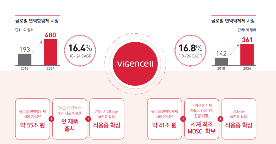 1세대 치료법인 외과적 절제수술, 2세대 치료법인 화학 및 방사선 치료, 3세대 치료법인 면역치료가 있습니다. 물론 대부분의 경우 한가지 치료법만 사용하지 않고 복합적으로 사용하는데요. 이 가운데 우리 몸의 면역체계를 활성화해 암세표를 제거하는 면역치료가 최근에는 차세대 치료요법으로 각광받고 있습니다. 이런 면역치료가 바로 바이젠셀의 사업분야입니다.