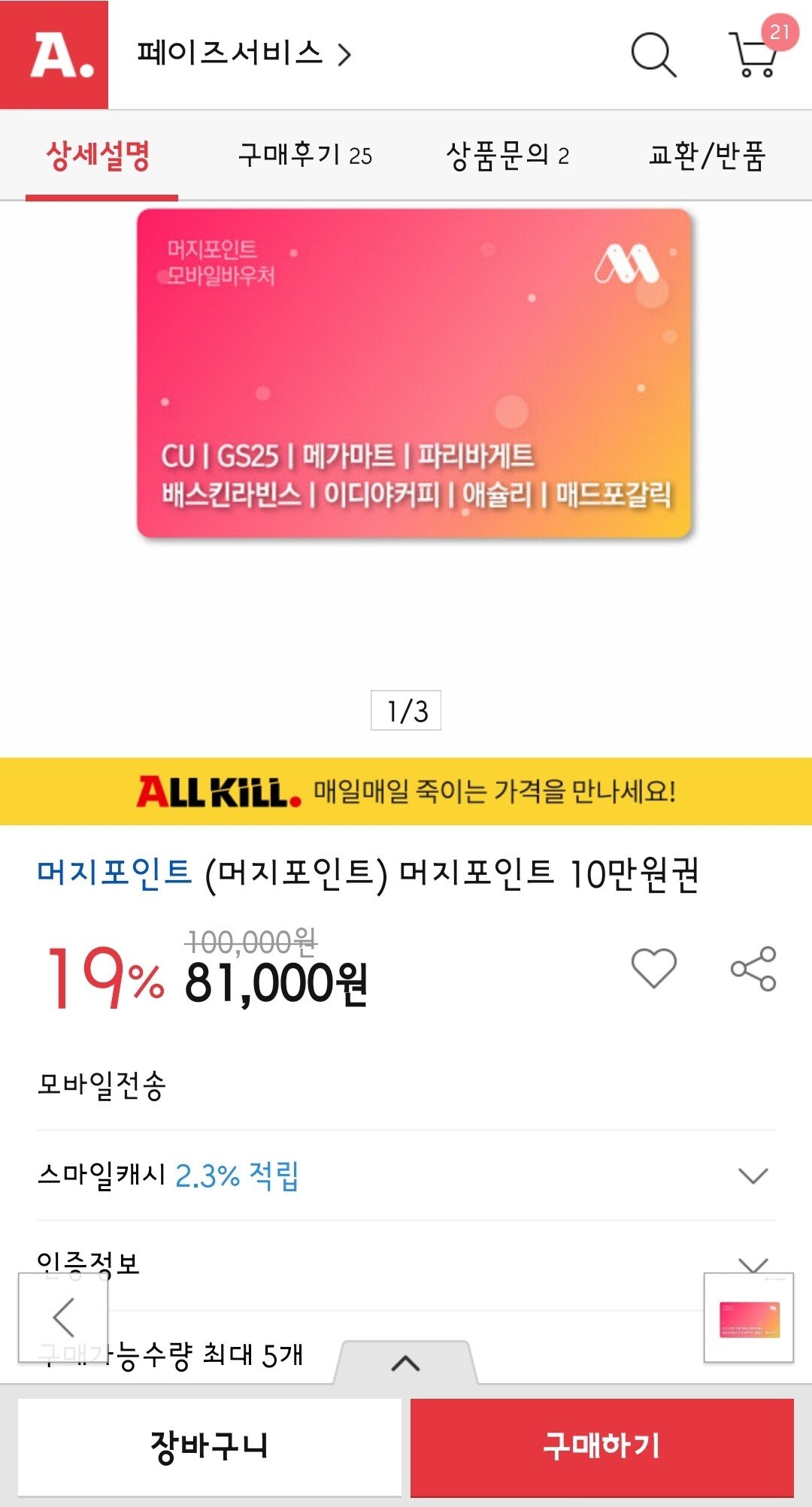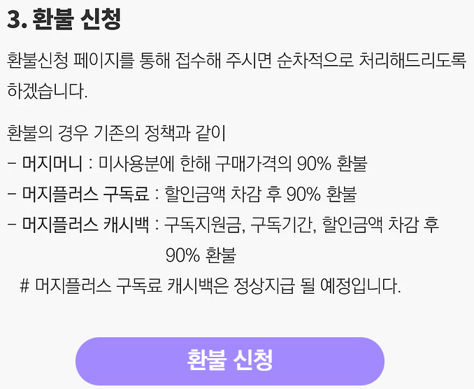 - 머지머니 : 미사용분에 한해 구매가격의 90% 금액 환불