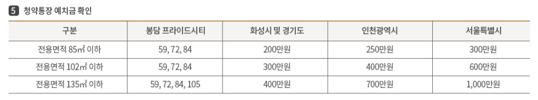 청약통장 예치금은 표를 확인해주세요.