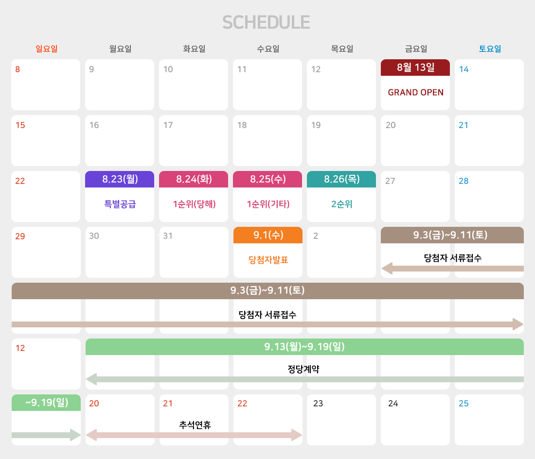 - 특별공급 모집 : 8월 23일(월)