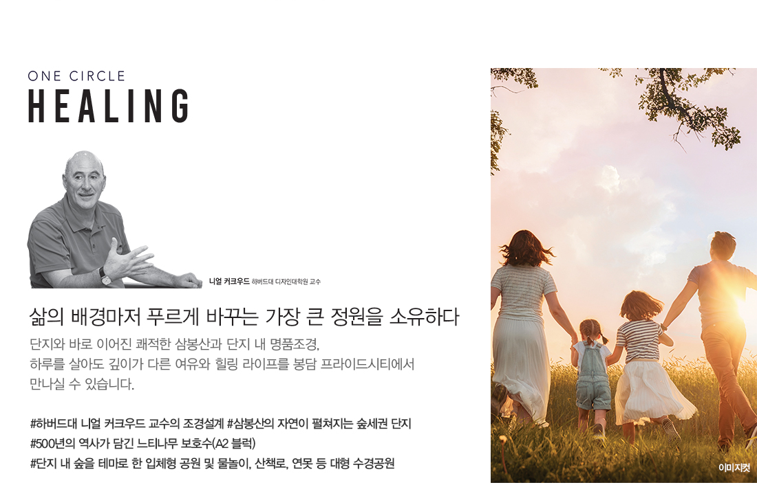 저는 개인적으로 힐스테이트 봉담 프라이드시티의 조경이 좀 기대되기도 하는데요. 미국의 하버드대 니얼 커크우드 교수가 단지 조경에 직접 참여했다고 합니다. 게다가 조경면적이 엄청 넓습니다. 무려 49%에 해당되는데요. 왕벚나무 가로수길과 잔디광장, 생태연못, 조화의숲, 야간 수경시설 등등 단지 곳곳에 녹지와 조경 인프라가 다양하게 들어설 예정이라고 합니다.