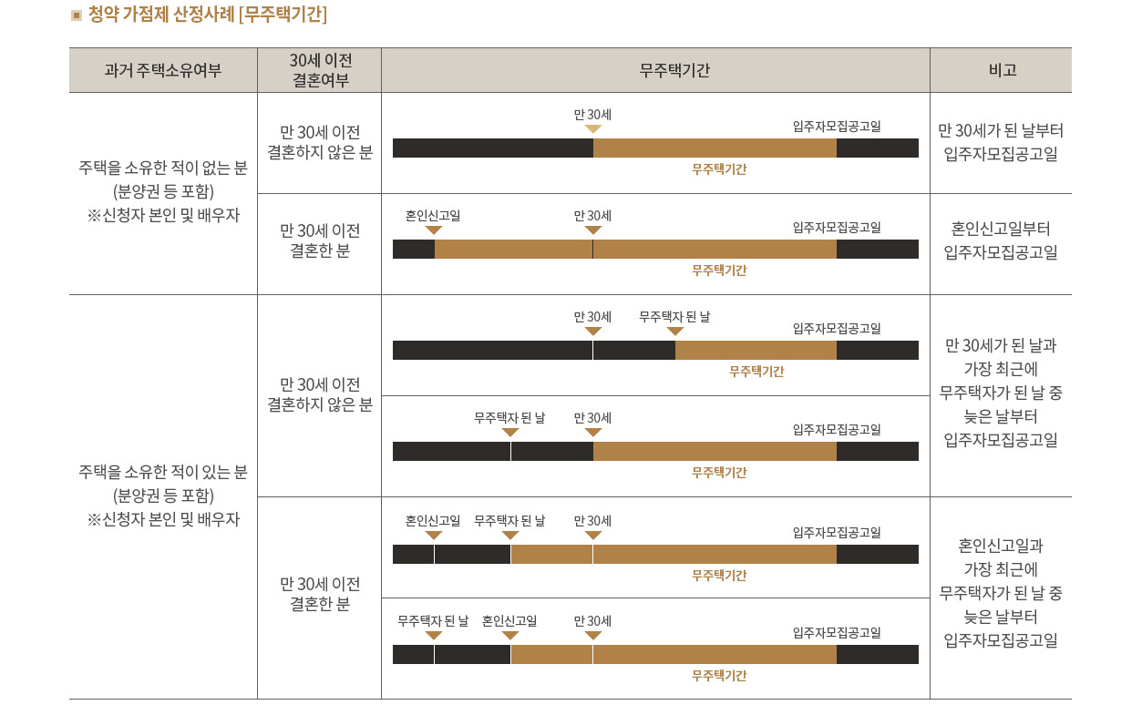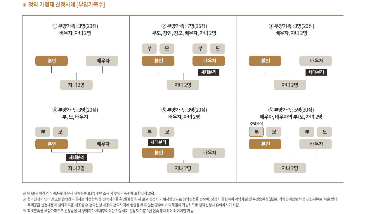 2) 생애최초, 노부모부양 전형은 청약통장 가입 후 24개월 이상 경과하여야 합니다.