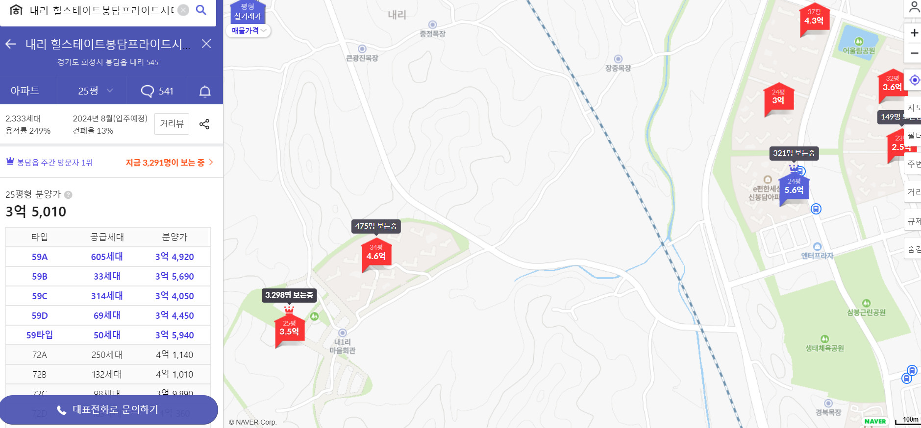 제가 다양한 SNS관심도, 구글 및 네이버 검색 빅데이터 자료와 네이버 부동산, 호갱노노 등의 자료들로 살펴봤을 때 힐스테이트 봉담 프라이드시티의 예상 경쟁률은 대략 14:1 정도로 예측되는것으로 보입니다. 2,333세대임에도 14대 1이면 굉장히 뜨거운데요. 아마 이정도면 당연히 일반공급 청약에서도 1순위에서 끝나겠죠?
