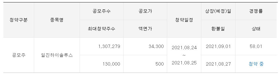 1) 일진하이솔루스 공모주 청약일 : 8/24(화)~8/25(수) 08:00 ~ 16:00