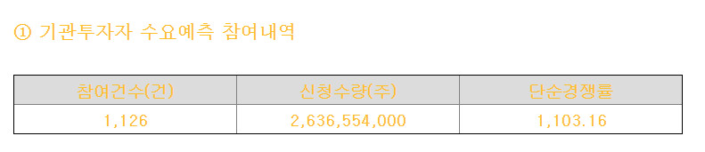 - 기관투자자 경쟁률 1,103.16 : 1