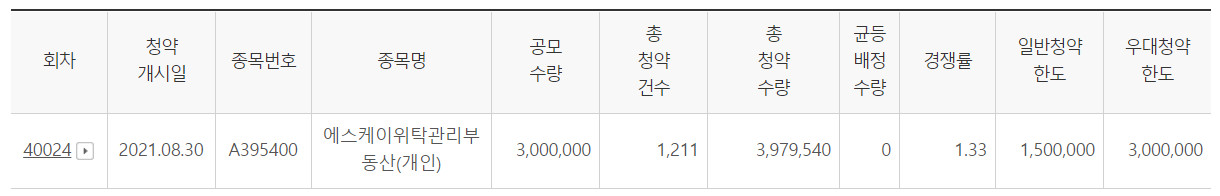 3) SK리츠 공모주 청약 배정 결과 발표 : 9/3(금)