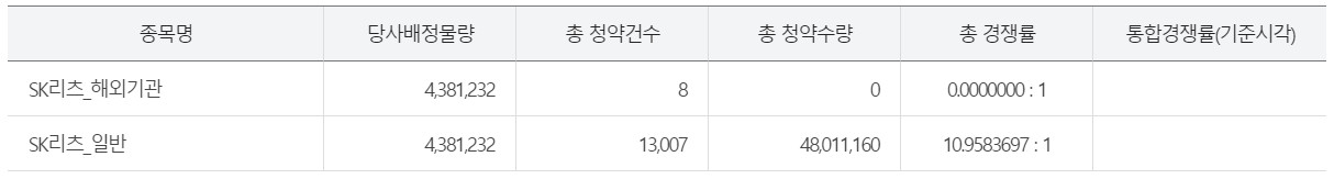 증권사별 SK리츠 청약 경쟁률 확인하기