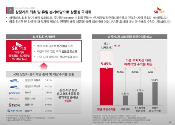 4) SK리츠 상장일 : 9월 중 코스피 상장