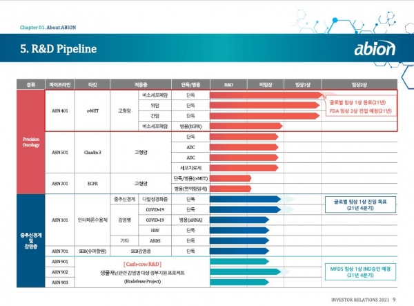 ABN101의 1차 적응증으로 다발성경화증을 타깃해 연구 중이며, 최근 코로나 치료제로서 인터페론 약물 가능성이 대두되다보니 코로나 치료제로 동시 개발 중이라고 합니다. 인터페론-베타 바이오베터의 특징을 생각했을 때 향후 암이나 바이러스성 질환, 급성호흡기증후군, 기타 자가면역 질환 등 다양한 적응증으로 활용이 기대되네요.