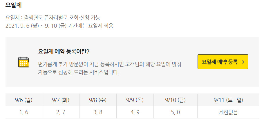 예를 들어 1966년 생이신분들은 9월 6일이나 9월 11일부터 신청하시면됩니다.