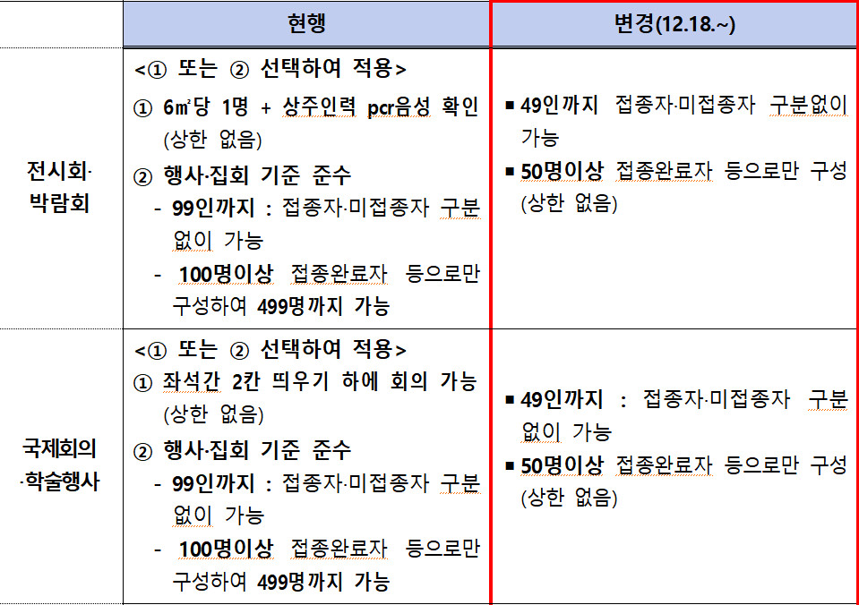- 접종완료자로만 구성시 인원 제한 없음